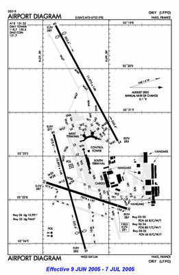été 1991 : Suite aux travaux du TGV à Roissy et la fermeture de sa piste 2, la piste reste active.