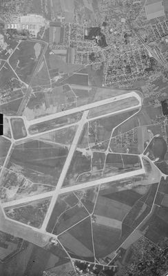 10 Mars 1965 : pas visible (ou pas de marque significative) mais des avions de l'aéro-club visibles devant un hangar.14 14 Février 1964 : pas visible (ou pas de marque significative) mais des avions de l'aéro-club visibles devant un hangar.